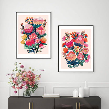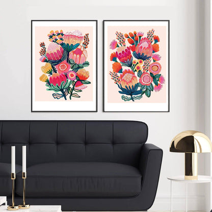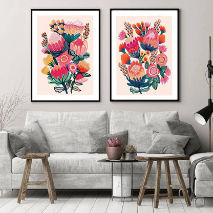 Australian native flower wall art set with proteas, banksias and wild blooms — transforming bare walls into a vibrant display of floral beauty and modern botanical art.