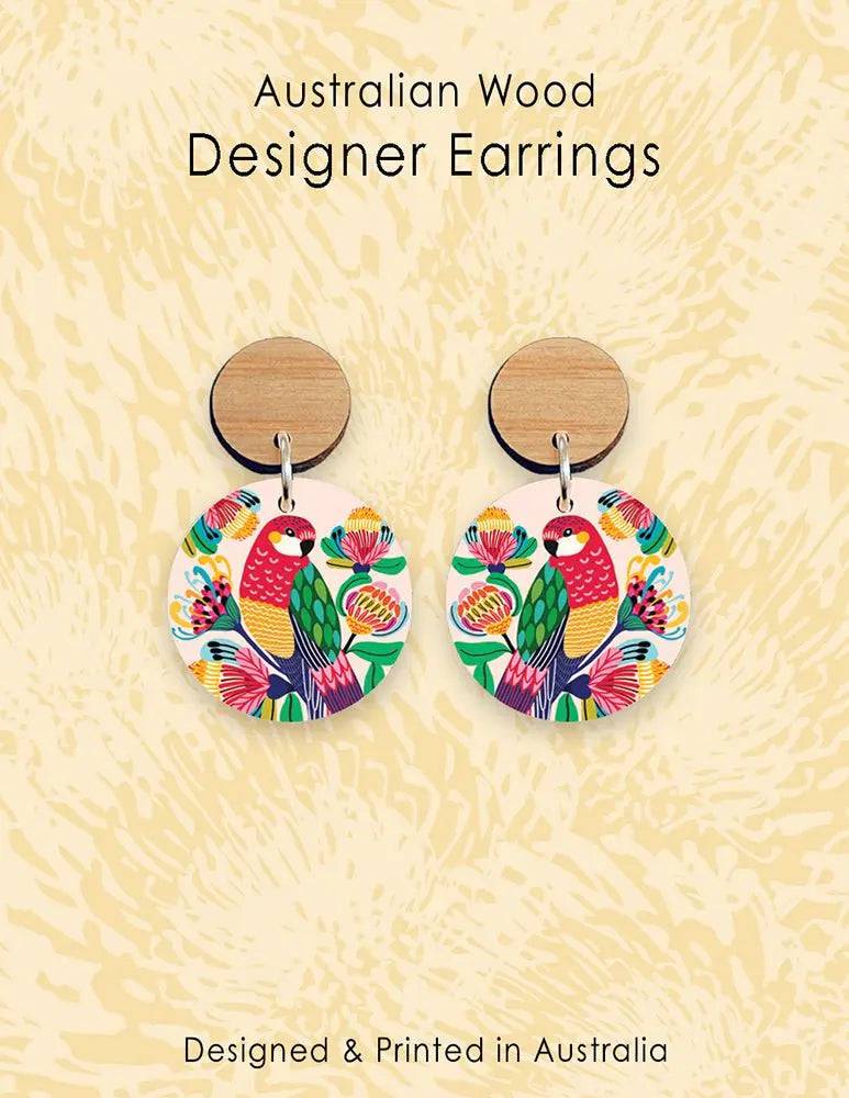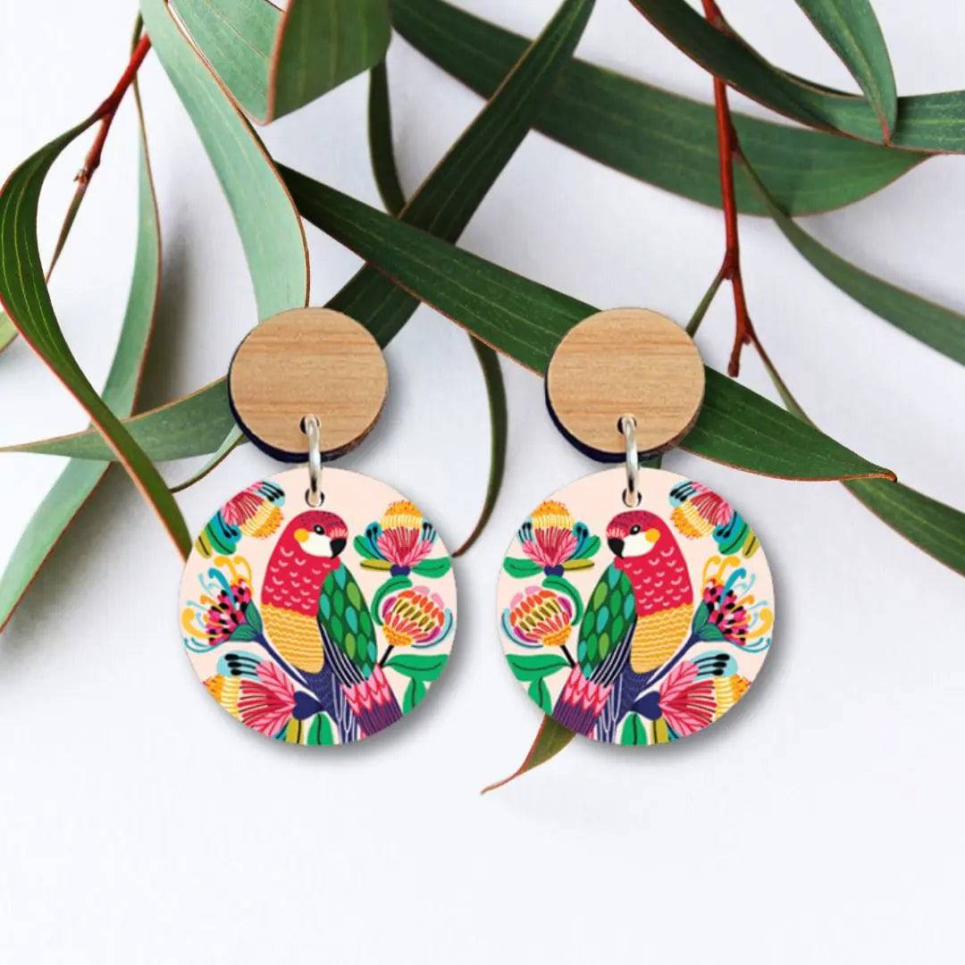 Australian Rosella Birds Wooden Earrings