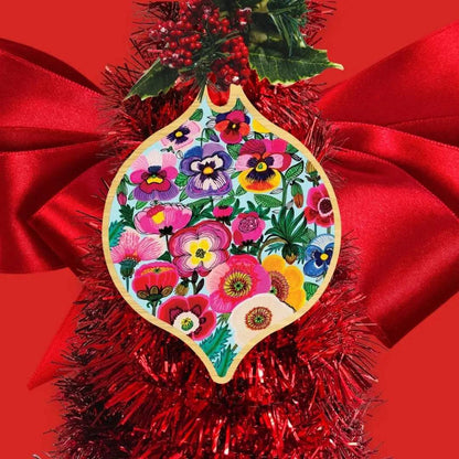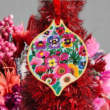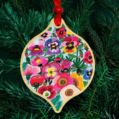 Look no further than our Pansy & Poppy Flowers Wooden Christmas Ornament from Australian artist and designer Kirsten Katz.