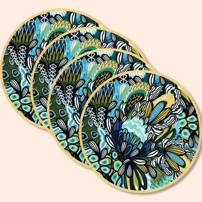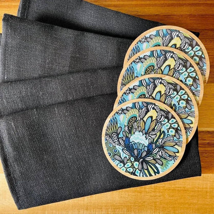 Azure Proteas Australian Wooden Coaster & Napkin Set