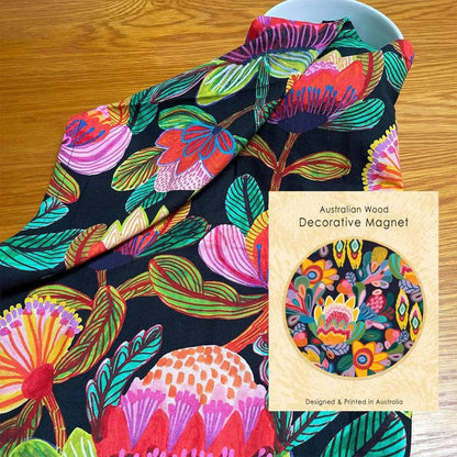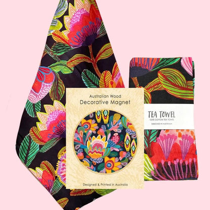 Protea Fantasy Tea Towel & Wooden Fridge Magnet Gift Set