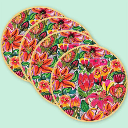 The Tigerlily and Tulip Flowers Wooden Coaster set, is a beautiful set of 4 coasters printed with a original artwork by Australian artist and designer Kirsten Katz.