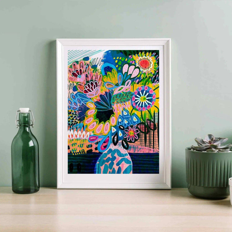 A lively floral wall print that brings modern design and joyful colour to your home or studio.