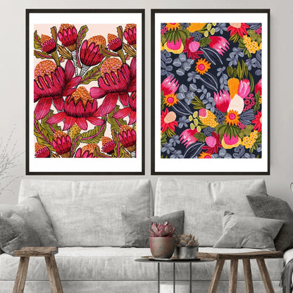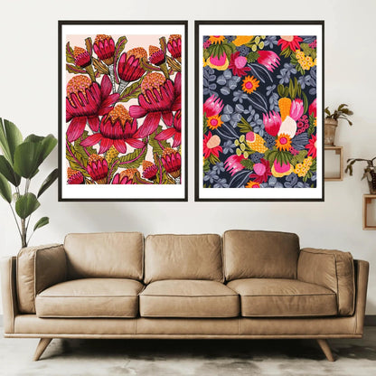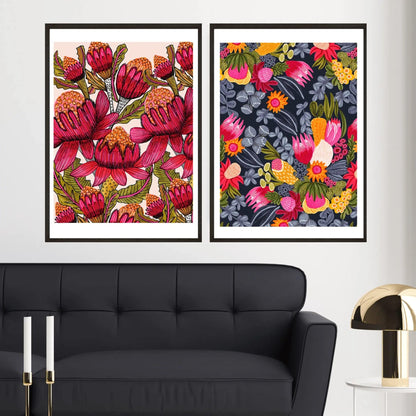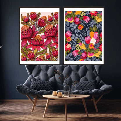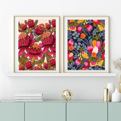 Australian native floral art prints — transforming your walls into a gallery of proteas, waratahs and banksias, bringing vibrant botanical beauty and modern style to your home.