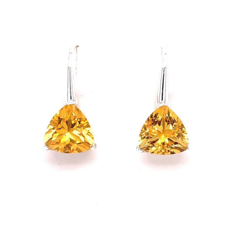 This pair of sterling silver drop earrings features a stunningly handcrafted design with anatural Citrine gemstone in a trilliant cut shape.