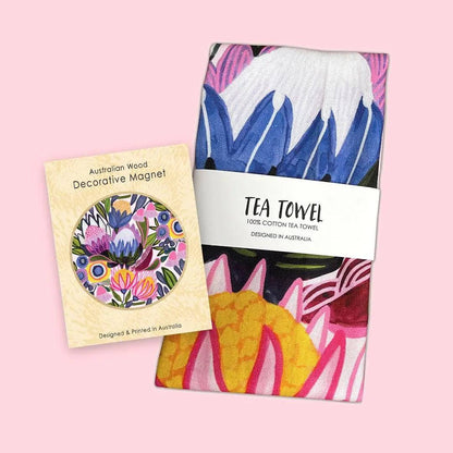 Home Decor Gift Set: Protea Magnifica Tea Towel & Fridge Magnet