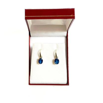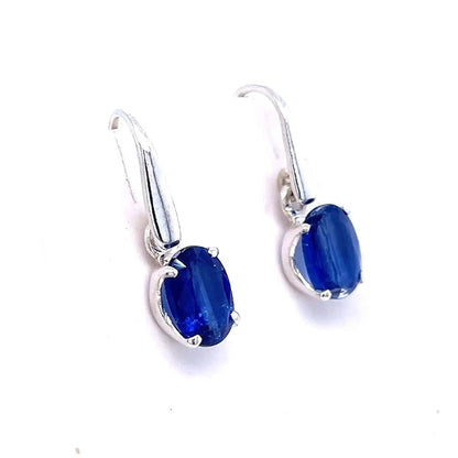 These sterling silver drop earrings are set with a pair of natural oval shape Kyanite gemstones.