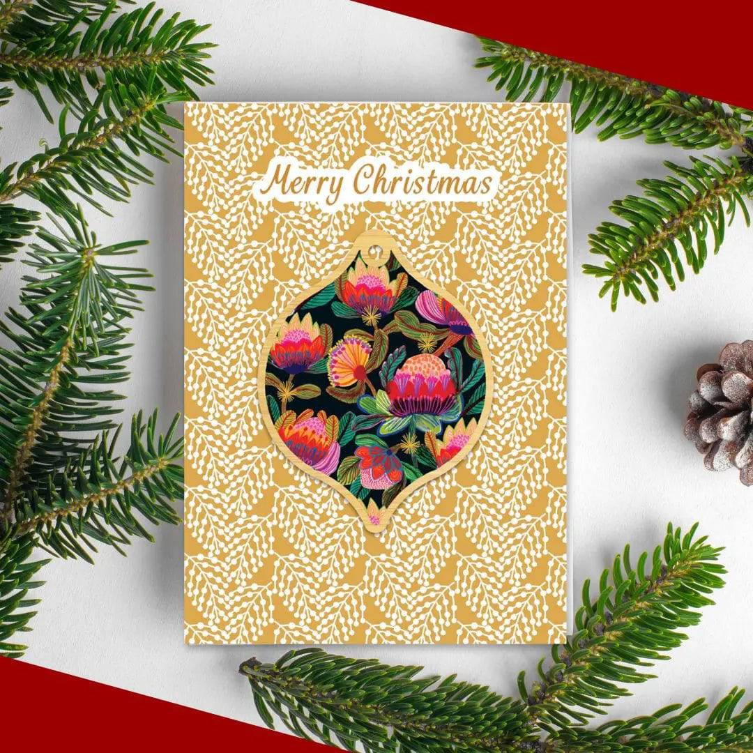 Looking for a unique and beautiful Christmas ornament decoration? Look no further than the Protea Australis Christmas Card with Wooden Christmas Bauble!